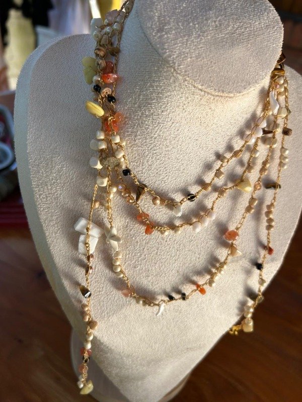 COLLAR MIL VUELTAS - naranja con caracoles