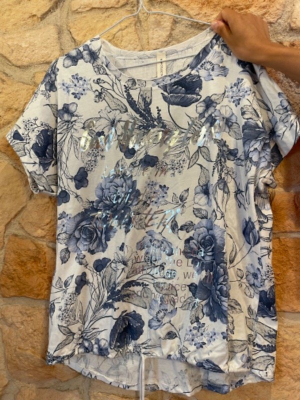 Remera de algodón con estampado dorado y cordón para ajustar a la altura de la cintura