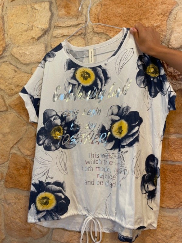 Remera de algodón con estampado dorado y cordón para ajustar a la altura de la cintura