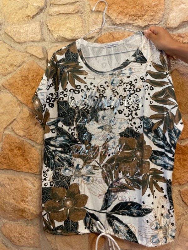 Remera de algodón con estampado dorado y cordón para ajustar a la altura de la cintura